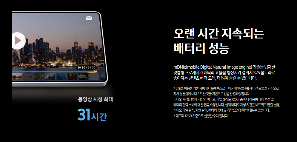 장시간 사용 가능한 강력한 배터리와 고속 충전